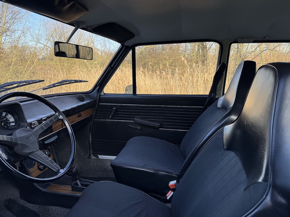 Het interieur is voorzien van de originele nonnenkap stoelen, Marathon stuurwiel en houtlook dashboard. Ook de middenconsole is als extra optie aanwezig met werkende toerenteller en temperatuurmeter.